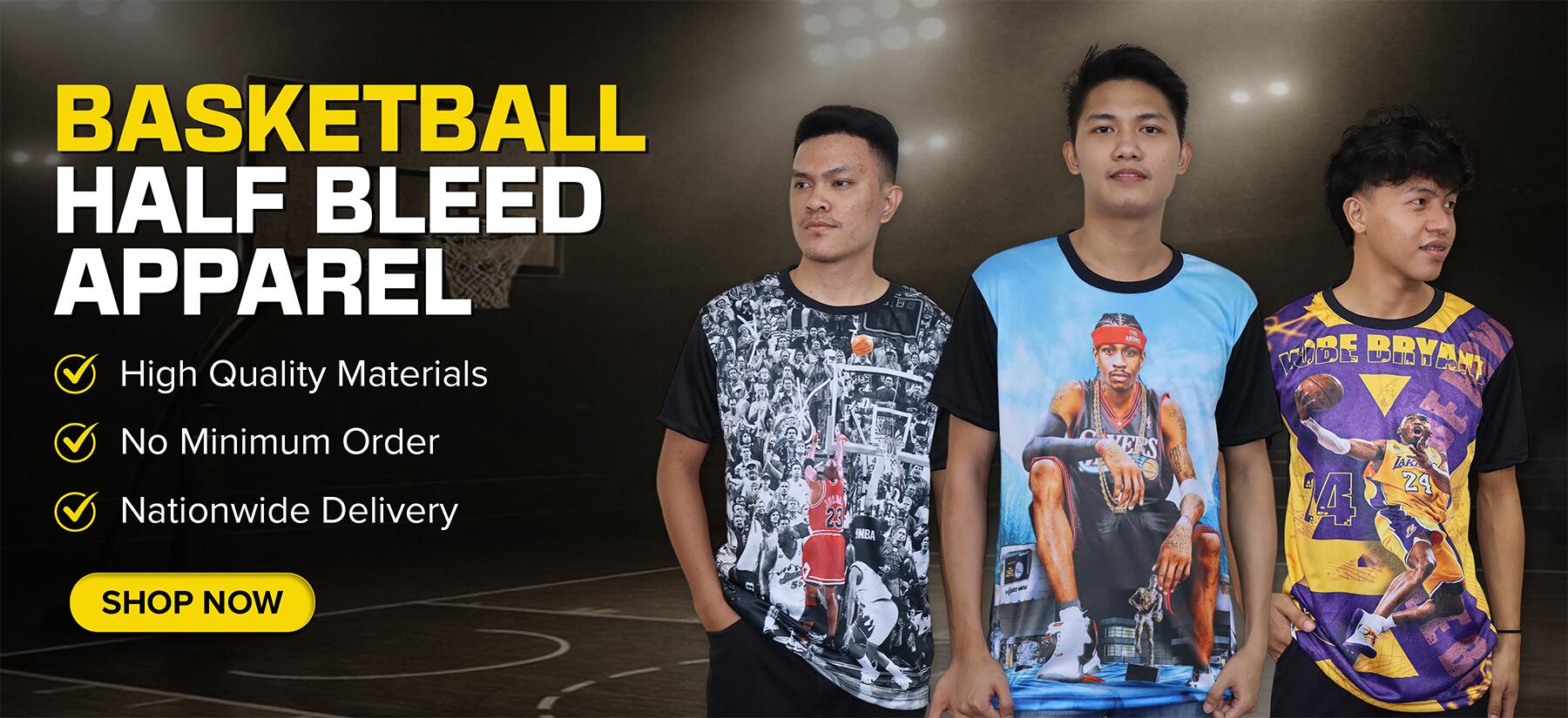 Bring the court to your everyday with basketball half-bleed apparel.