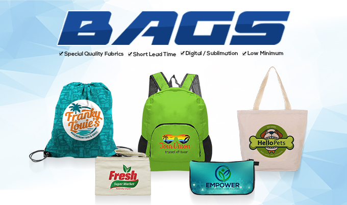 A: Our promotional bags are made of lightweight polyesters, Nylons, and High Quality Canvas. The bags are made from durable polyester.