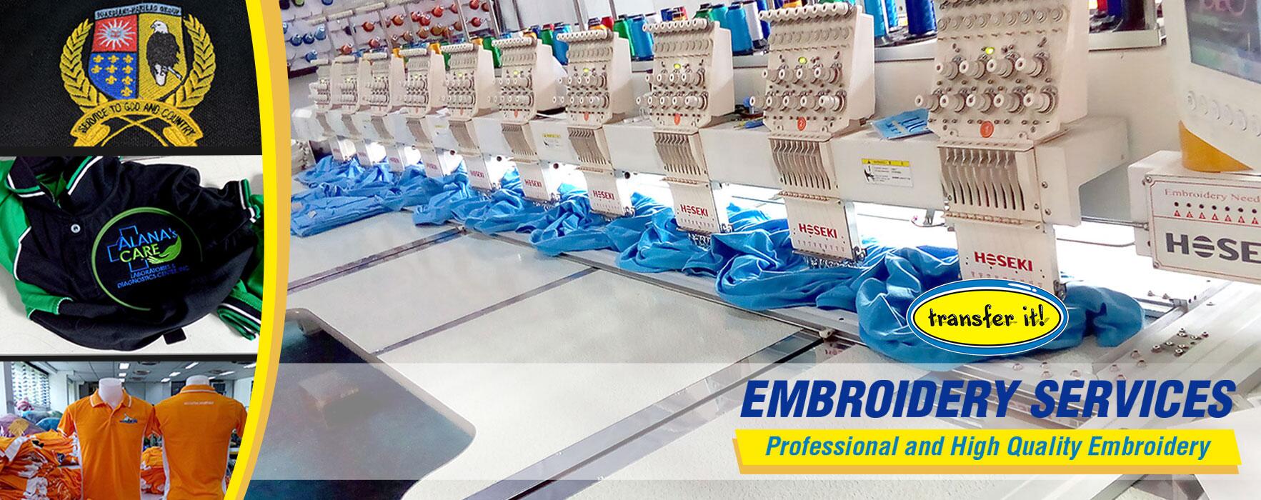 Our staffs at Transfer It is aware of the value of your logo and how it can leave a lasting impression on your clients. This is the precise reason we created our own embroidery division: to provide you with your most reliable embroidery provider through a quick and simple procedure.